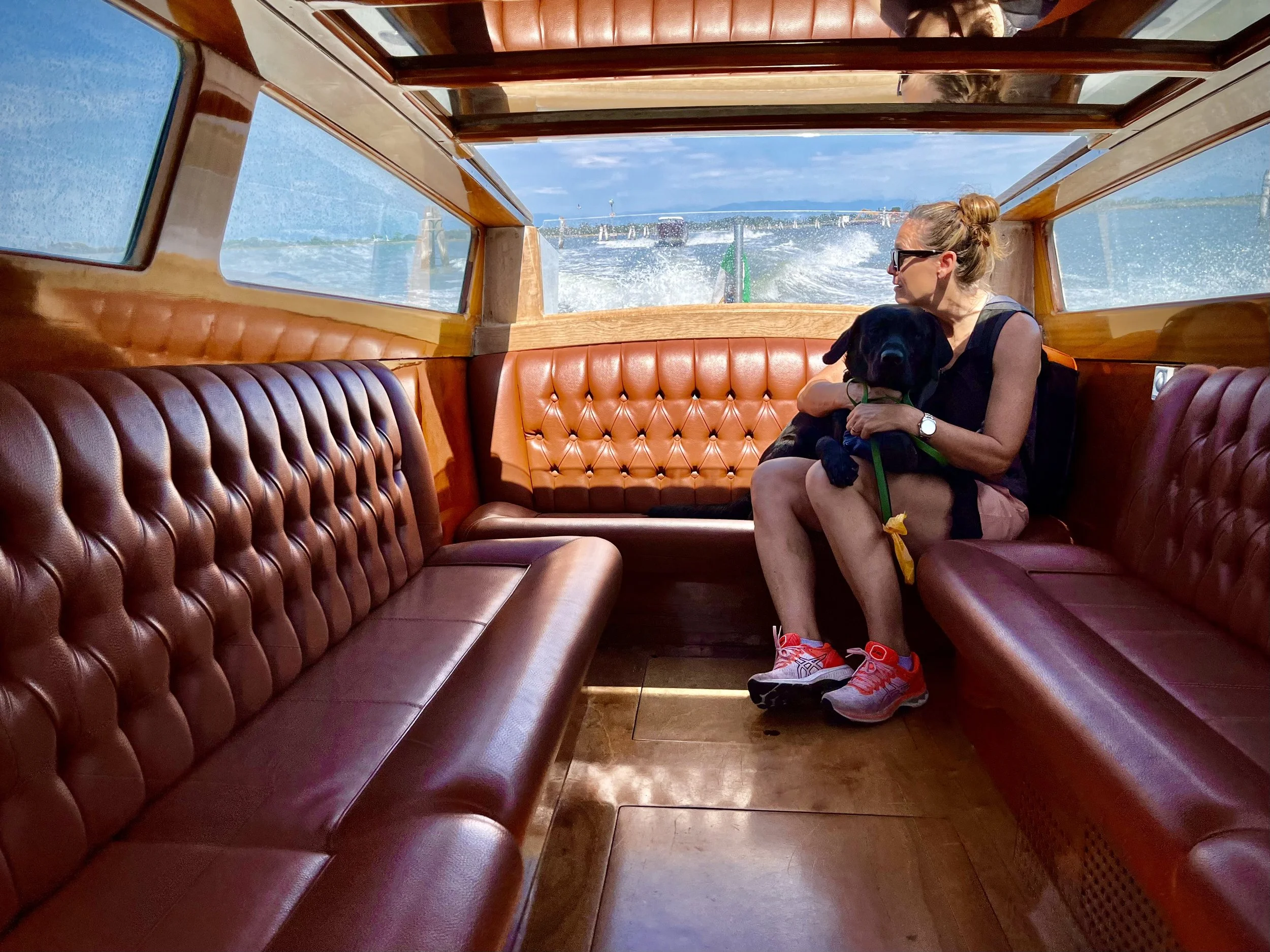 The answer to all of those questions was not yet and we will soon see. We were on our way to Parking Garage #1 at Marco Polo with that decision made. Our room was booked on the Island of Murano (as usual). In what seemed like the blink of an eye we were aboard Gino's water taxi. This leg of the journey happened solely because all dogs of any breed or size must be muzzled on a Vaporetto and oddly enough we don't own a muzzle. Hamish was happy, Deanna was delighted, I was poorer, and Gino was ecstatic because he was fleecing us 80 Euros for a 15-minute trip across the lagoon.