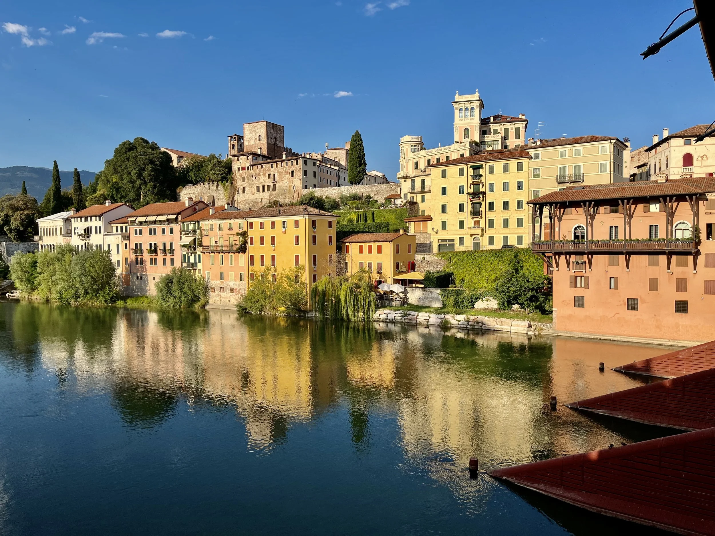 We loaded up the third consecutive rental car of the summer and set a course for a little town north of Vicenza called Bassano del Grappa. BDG is a beautiful place in the foothills of the Dolomites. The town’s wooden covered bridge which spans the Brenta river is a lovely and petite version of the Ponte Vecchio in Florence and the focal point of BDG.