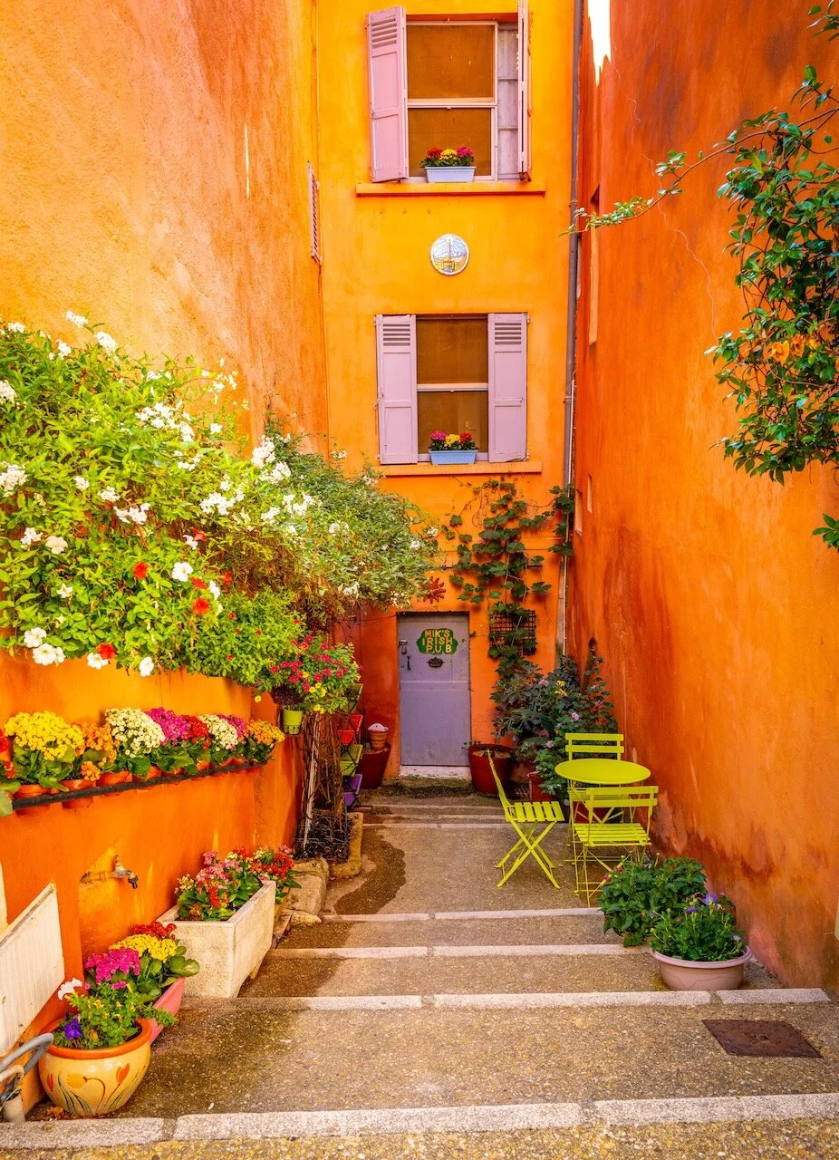 Not unlike our last village stop in Goult, the locals here in St. Saturnin Les Apt are also house proud and it shows as you wander the narrow streets. Whether it be the ornate front doors or the color schemes chosen to make their house just a little different to the neighbours, it is all done with taste and considerable thought.