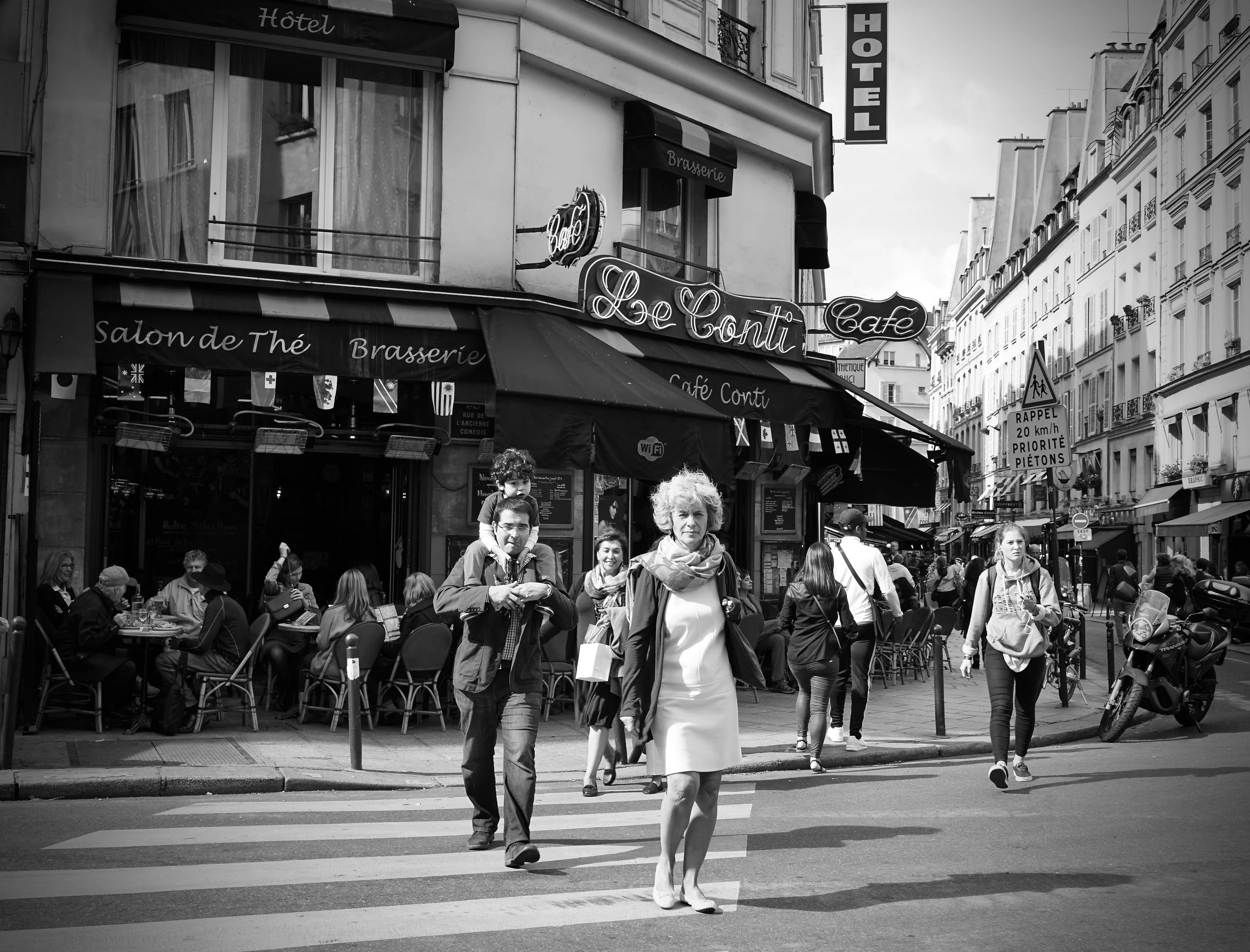Sometimes a cafe can be the best starting place for a photo walk. Also, a glass or two of wine can lower the inhibitions that can hold me back from getting in tight with a subject or composition. However, to be clear, two glasses of wine does not turn me into a paparazzi capable of skulking through people's garbage or hiding in the bushes for the right time to snap the money shot. That's weird, and I suspect "but can't say for sure" the telltale signs of an apprentice sociopath.